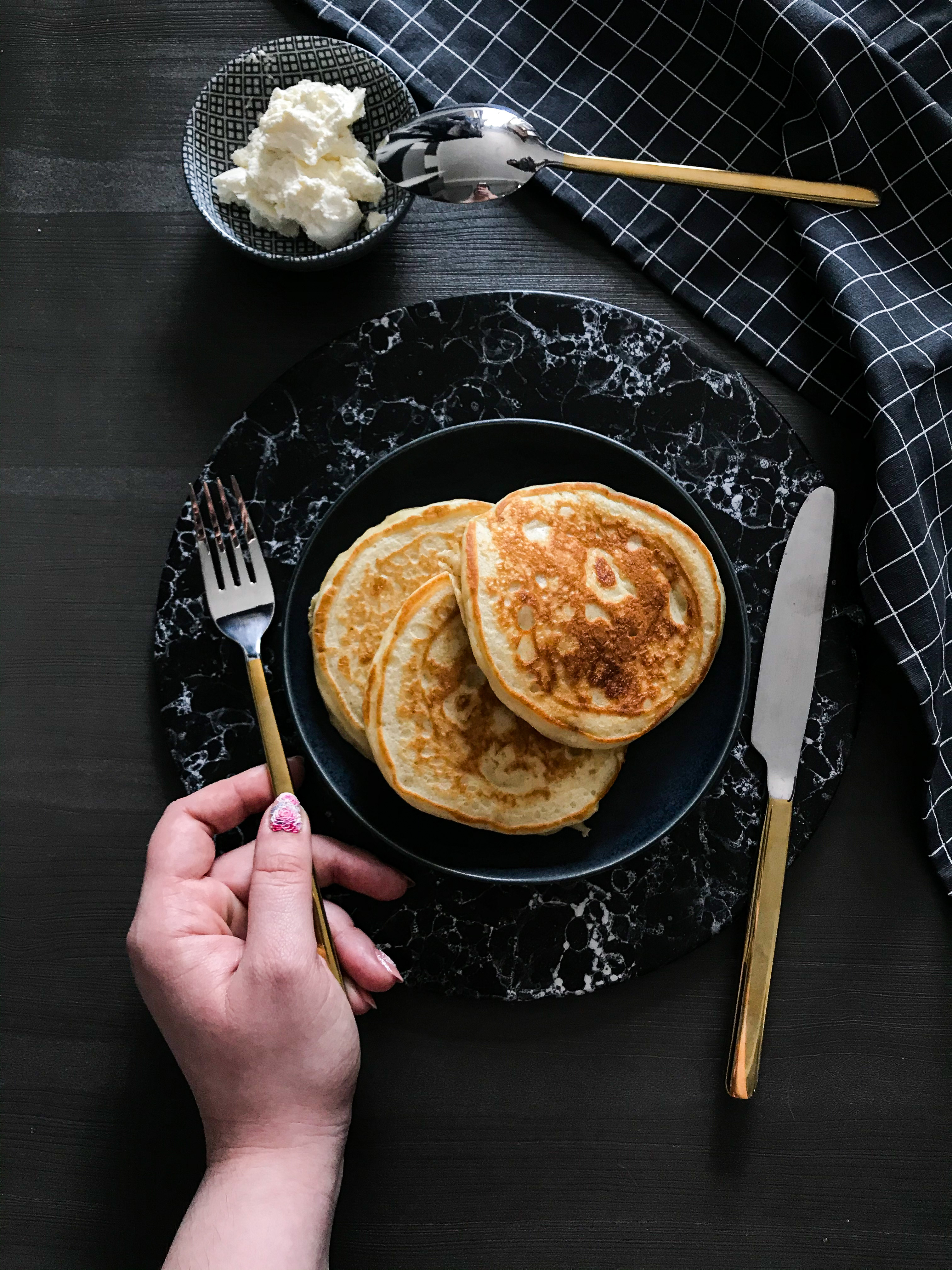 I have always wanted to make fluffy pancakes in a very easy way, but somehow, what I tried so far never hit the spot for me. I wanted something that was really quick, fluffy, easy to match with my favorite jam, or with a savory mushroom sauce.