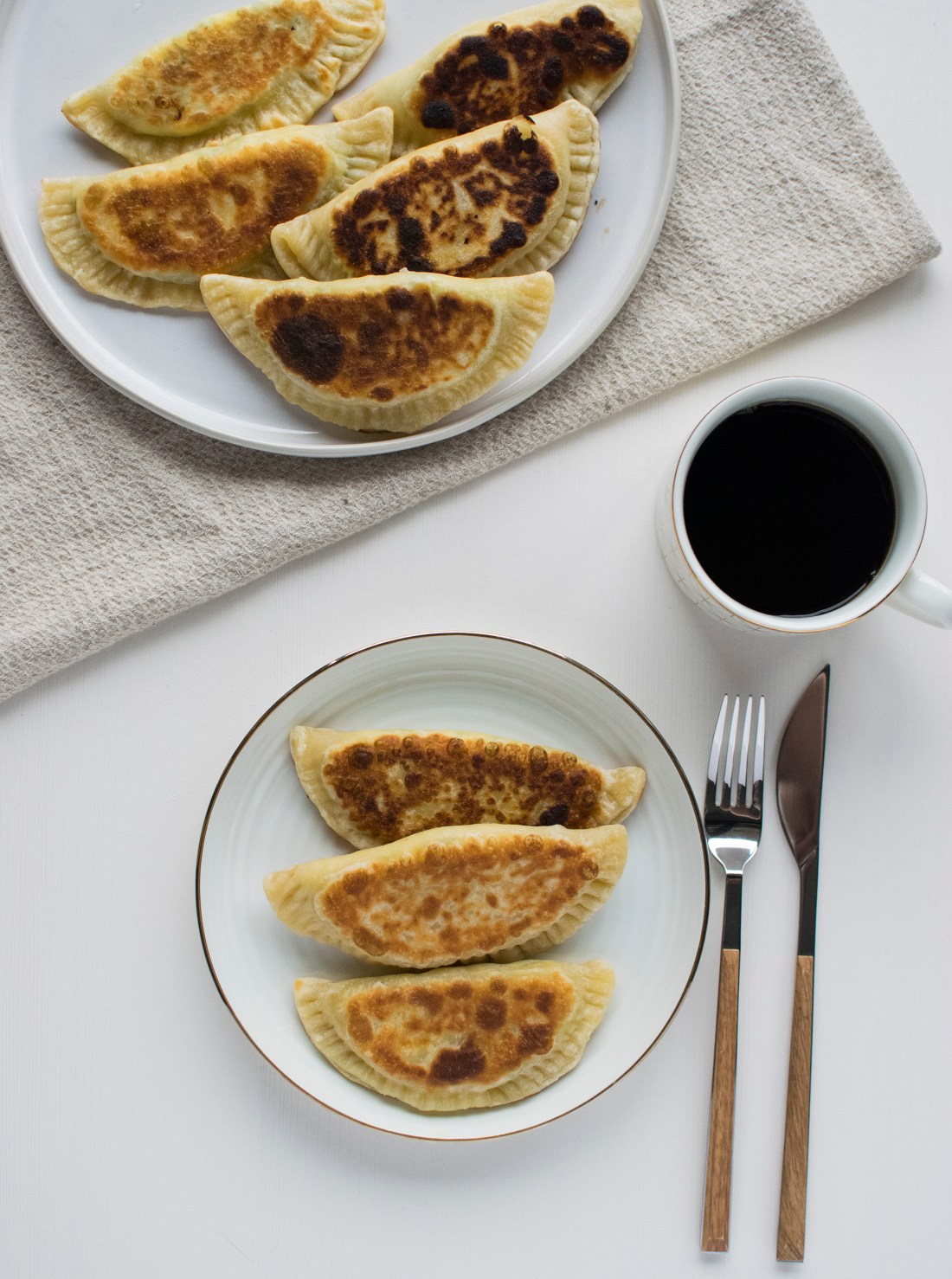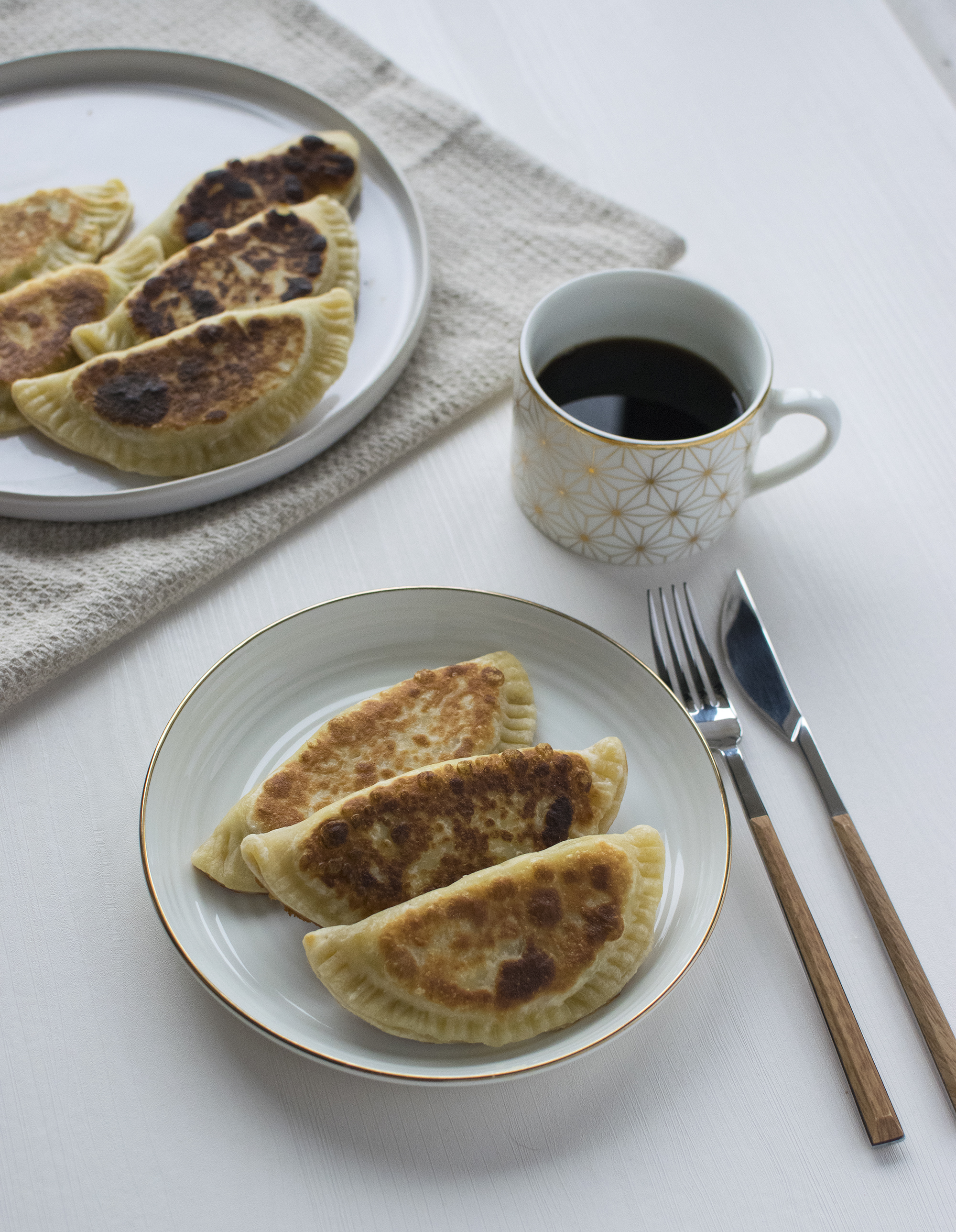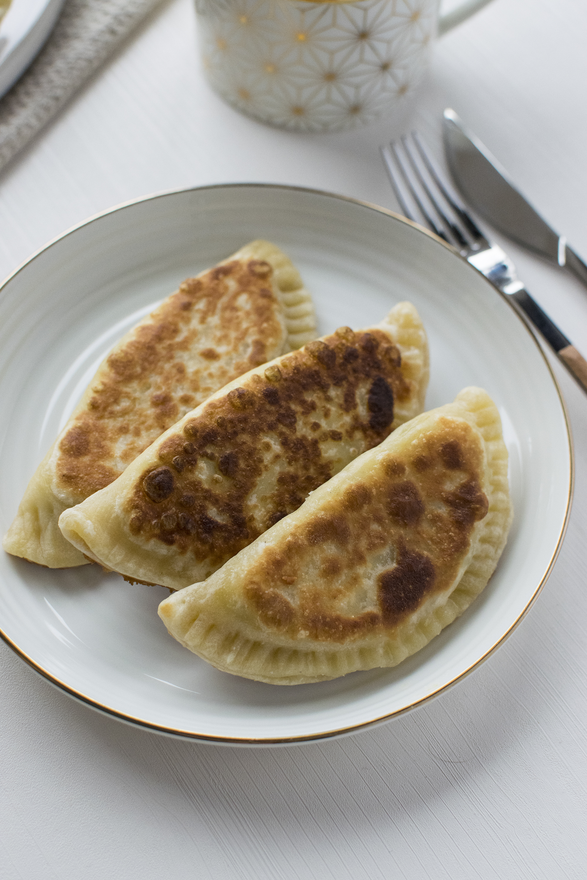 - One thing that I did not do the first time I made this, but I did it the last two times, was to add half a teaspoon of tapioca starch. You may ask why? Well, by the same principle where we add starch to our fruit pies/galettes/tartes to thicken the mixture that is too fluid or to absorb some of the liquid, here we need it because while cooking, the cottage cheese will free some liquid. That liquid will be in your dough pockets, making them soggy or you will have it dripping once you start eating. This bit of starch saves you from that inconvenience.