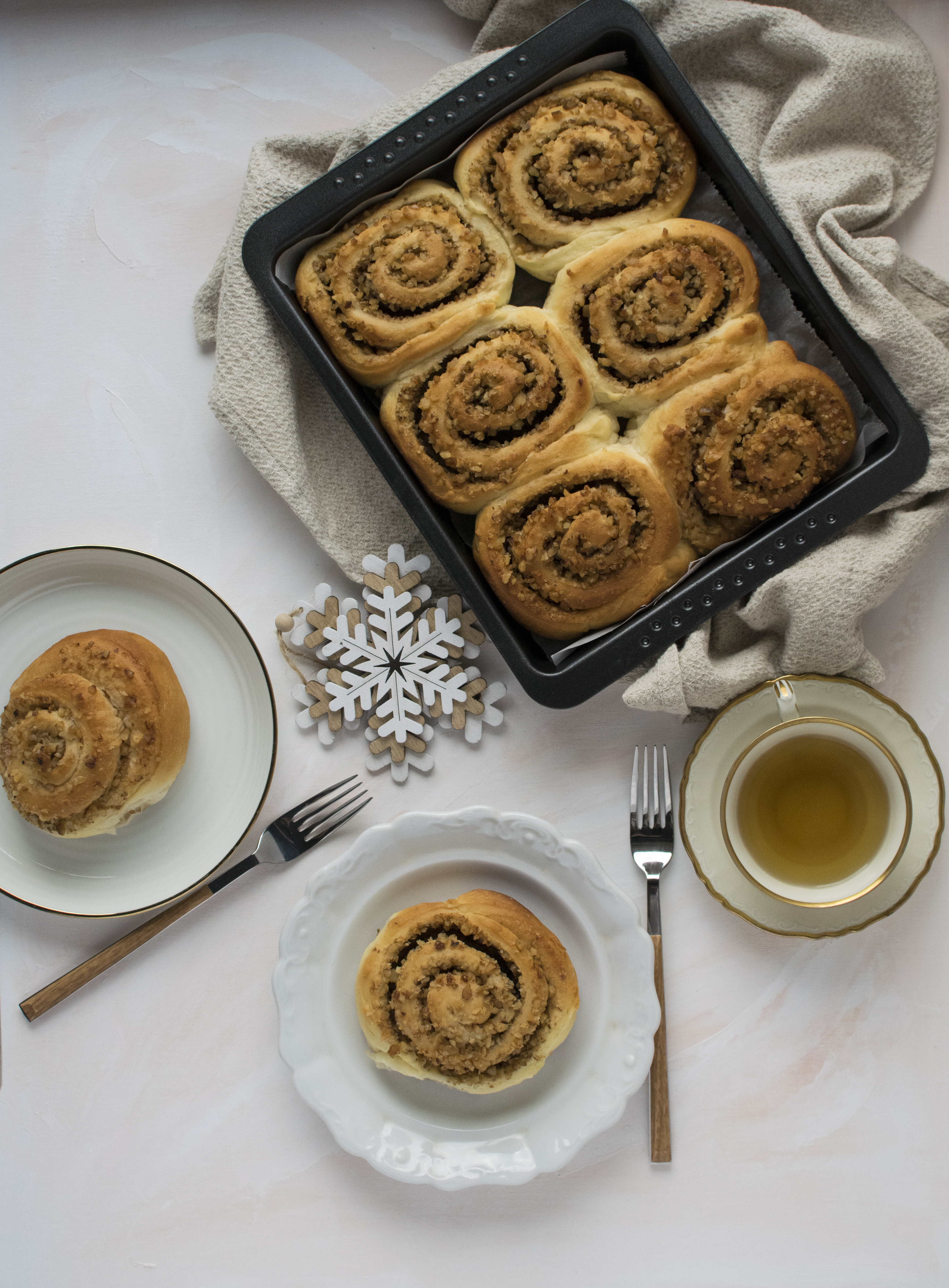 I know that cinnamon rolls are very popular, but I never found an appeal for them, I am not very sure why. Instead, rolls with walnuts, or even poppy seeds are way more interesting to me, although the latter have an extremely different texture, and are very rarely a choice of mine.