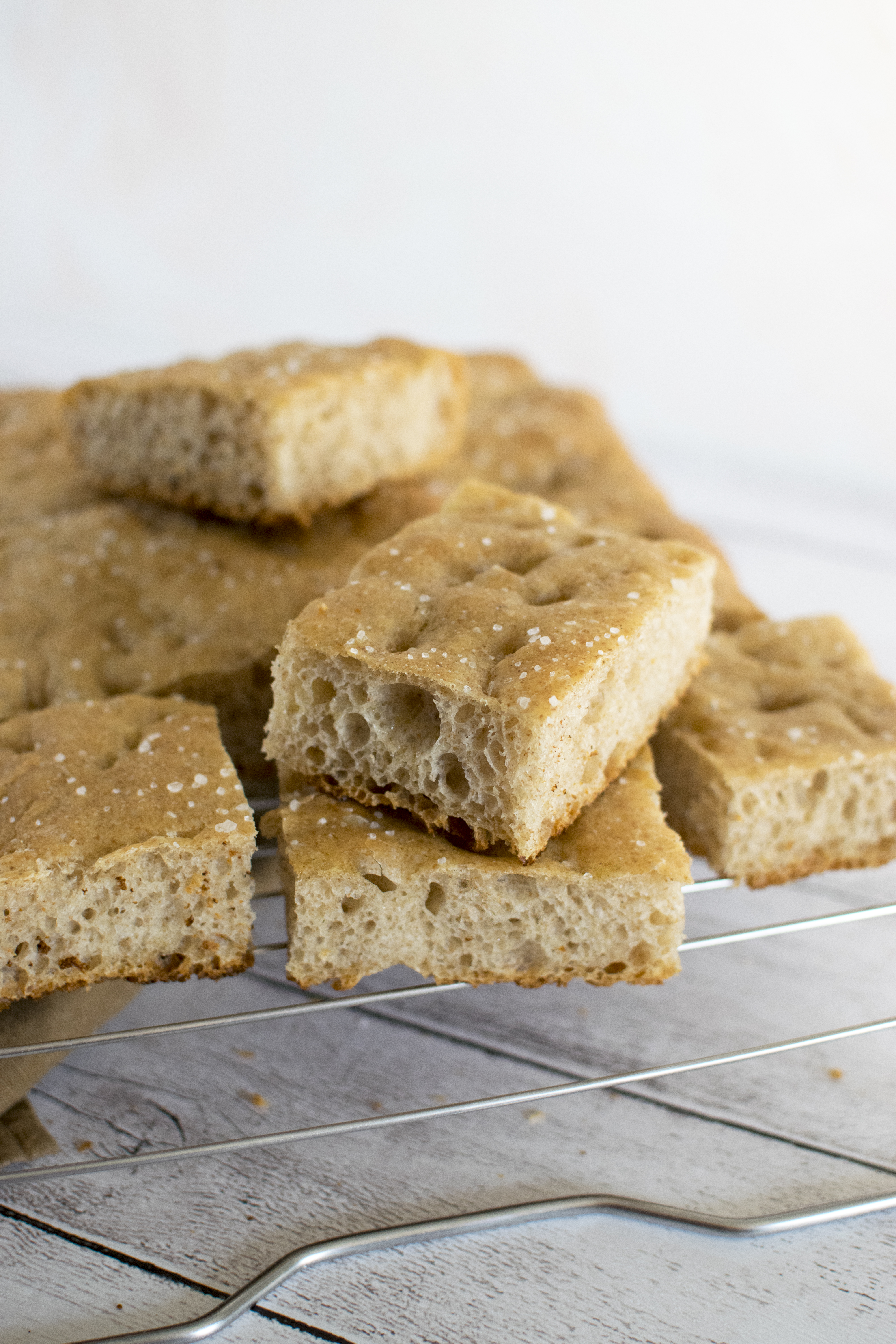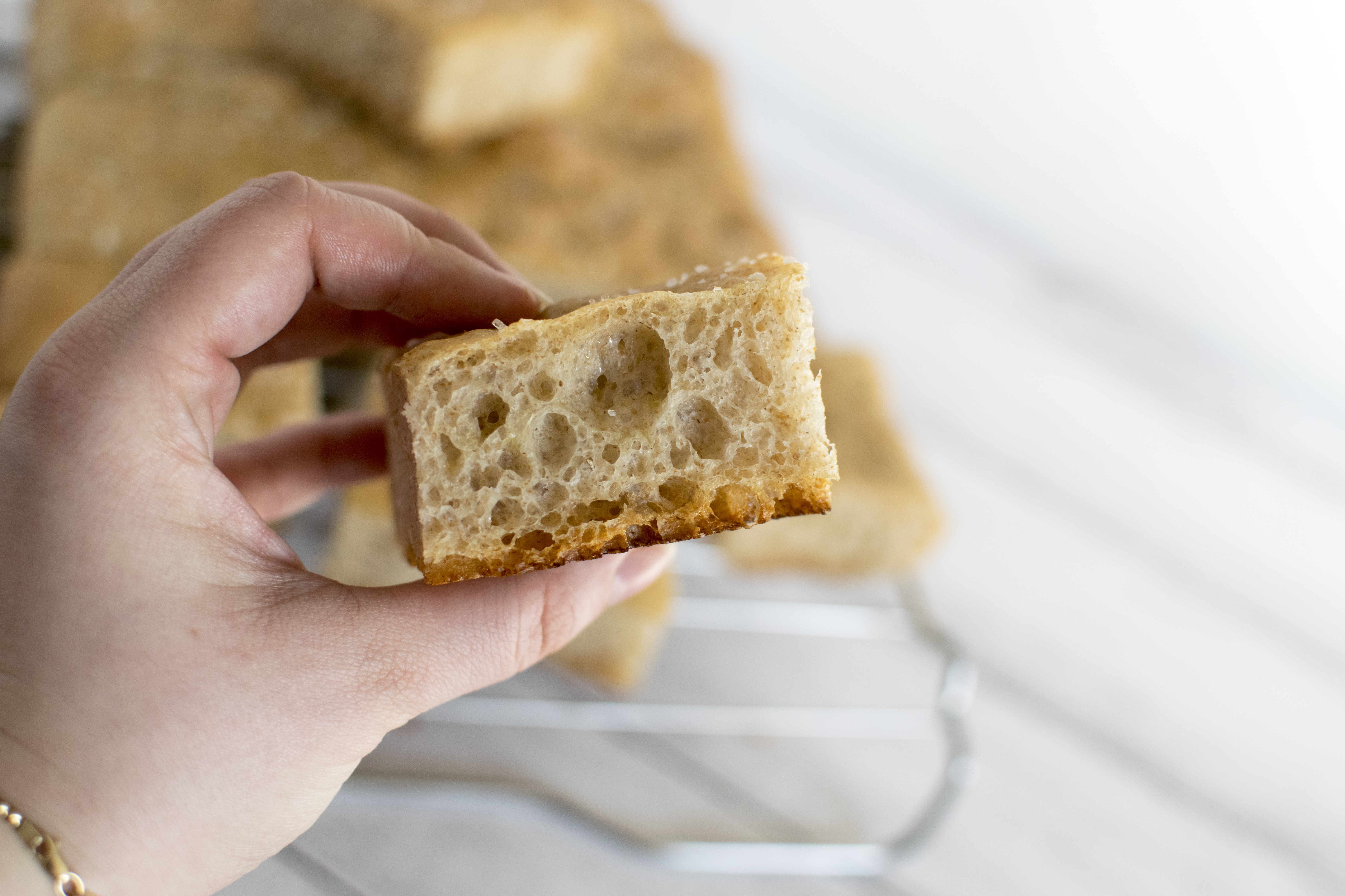Lately I’ve been making focaccia quite a lot. I admit, I have made quite a few with just a sprinkle of salt on top just because this was easier for me than making bread. Focaccia does not imply any shaping, which for me saves quite a lot of time and effort. Also, being a flatter bread, it means that I can benefit from the delicious crust more. Now, leaving my nonsense aside, let’s talk about how to get this amazing texture and bubbly crumb on your focaccia.