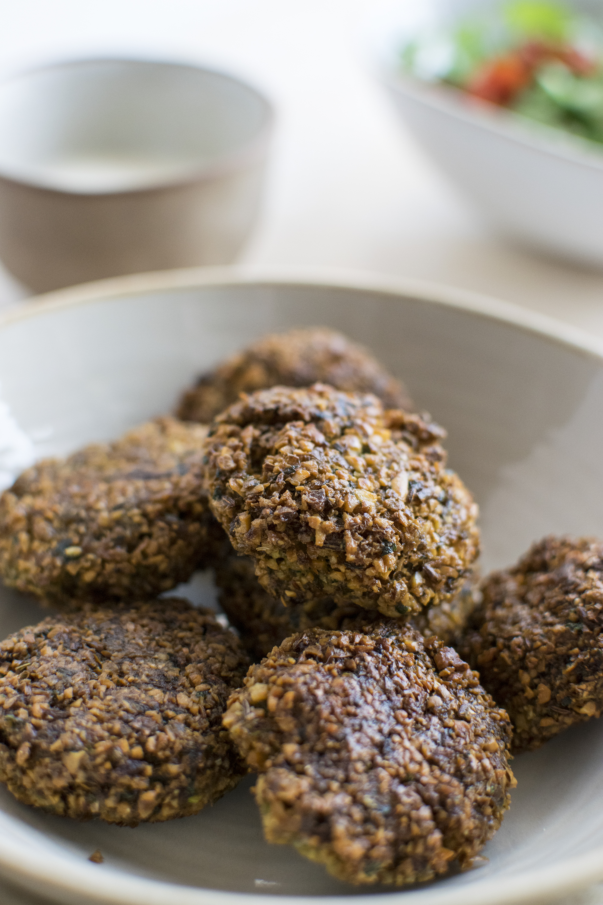 - Oil your palms and form the balls. I prefer to flatten them a little bit, it makes the cooking easier. If you bake them, keep them round.